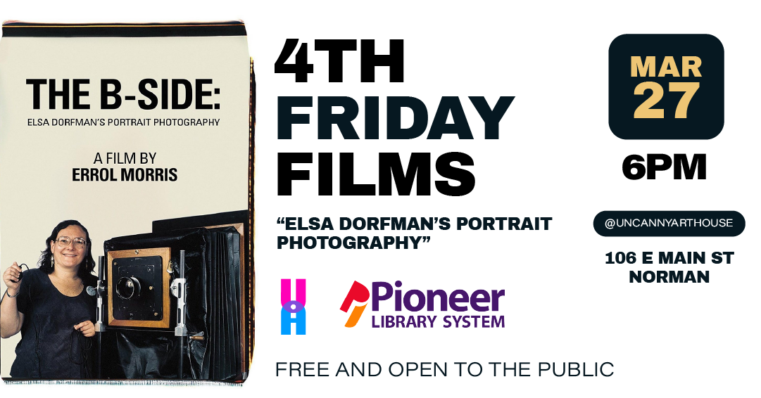 4th Friday Films is a film screening series in partnership with Pioneer Library System and Uncanny Art House to bring educational screenings and films to downtown Norman, Oklahoma. The films we screen are based on the current exhibition and are free and open to the public with a discussion following each each showing.