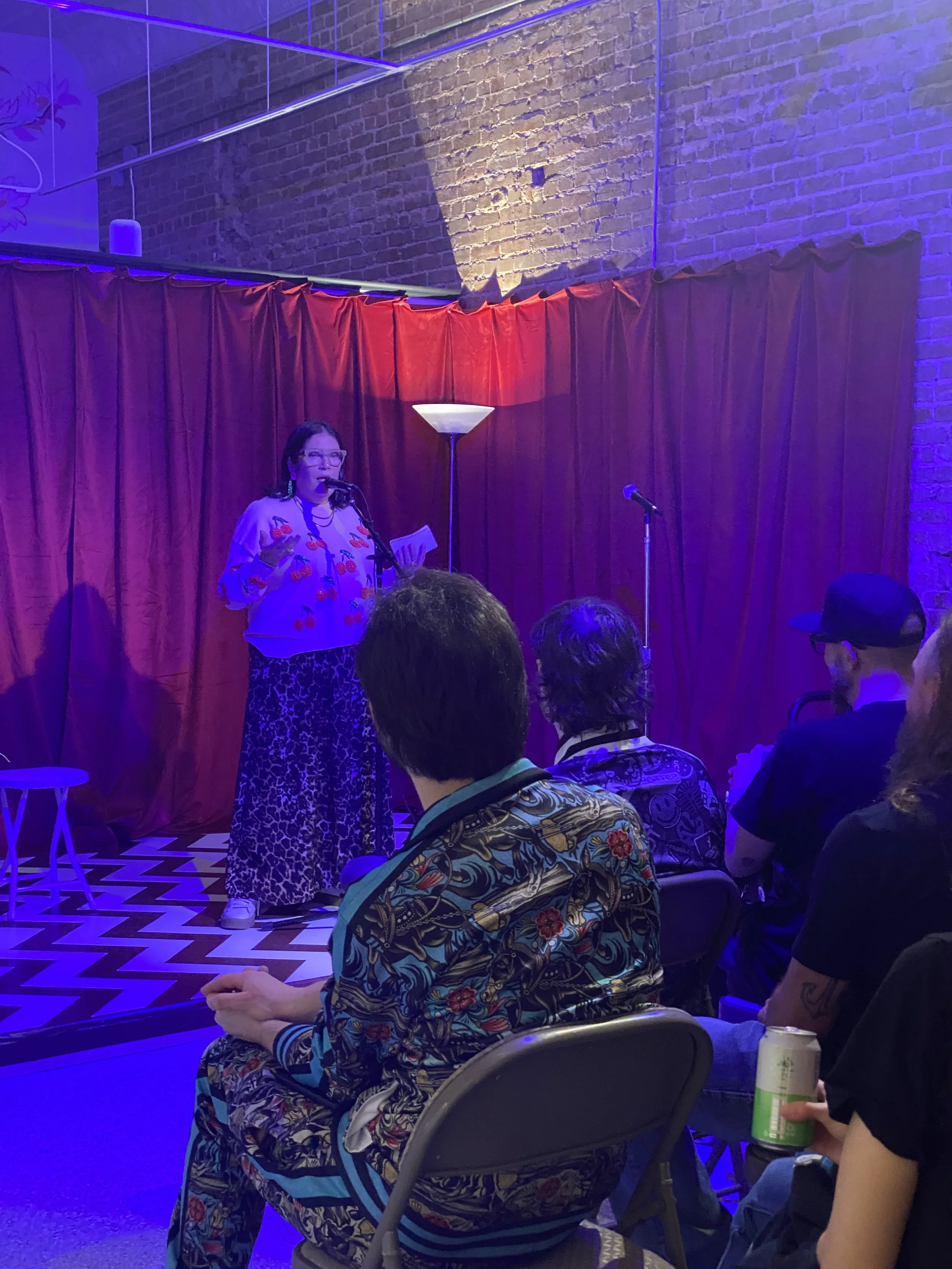 We closed out the exhibition with a night that leaned fully into the absurd. Comedy in the Black Lodge turned our gallery into a live comedy stage for three performances built around surreal humor, odd logic, and sharp wit. Jennifer Johnson opened the night with her dry, grounded observations that set just the right tone. , and husband-and-wife duo The Martin Duprass brought it home with deadpan sketch comedy featuring tarot readings for the audience. James Nghiem finished the evening with his non-sequitur, boundary-pushing style. It all felt completely at home in a space inspired by David Lynch, and it was a great way to close out two months of dreaming.